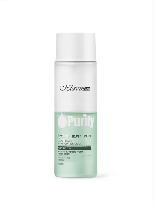 מסיר איפור דו-פאזי להסרה קלה ומהירה של כל סוגי האיפור, כולל איפור עמיד במים. תכשירי איפור רבים מכילים רכיבים על בסיס מים ורכיבים על בסיס שמן, ולכן מסיר איפור בפורמולה המשלבת פאזה שומנית ופאזה מימית – יעיל יותר בהסרת כל סוגי האיפור, גם את אלו העמידים במיוחד. הפאזה השומנית הינה תערובת ייחודית של רכיבים הפועלים לפירוק והסרת לכלוך ושאריות איפור. הפאזה השקופה מבוססת על מים מועשרים בתמציות צמחי מרפא ובאלוורה המשלימים את פעולת הניקוי ומסייעים להרגעת העור. בערבוב שתי הפאזות נוצרת סינרגיה מושלמת היוצרת פעולת ניקוי יסודית תוך שמירה על רמת הלחות של עורך.
